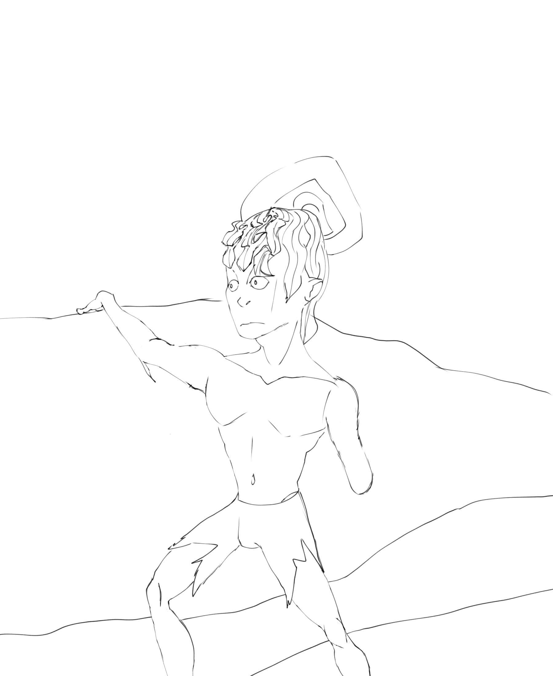 As his feathered oral arm touched her limb, he understood that she was not of the sea. Her mouth was not like anything he'd ever seen, there were no moving parts, not a circle or some weird shape. She had tentacles on her head (hair), eyes faving front and only four limbs that moved to keep her afloat it seems. Most of all, she had no scales. His antenna flicked. What was she and how does he become her kind.